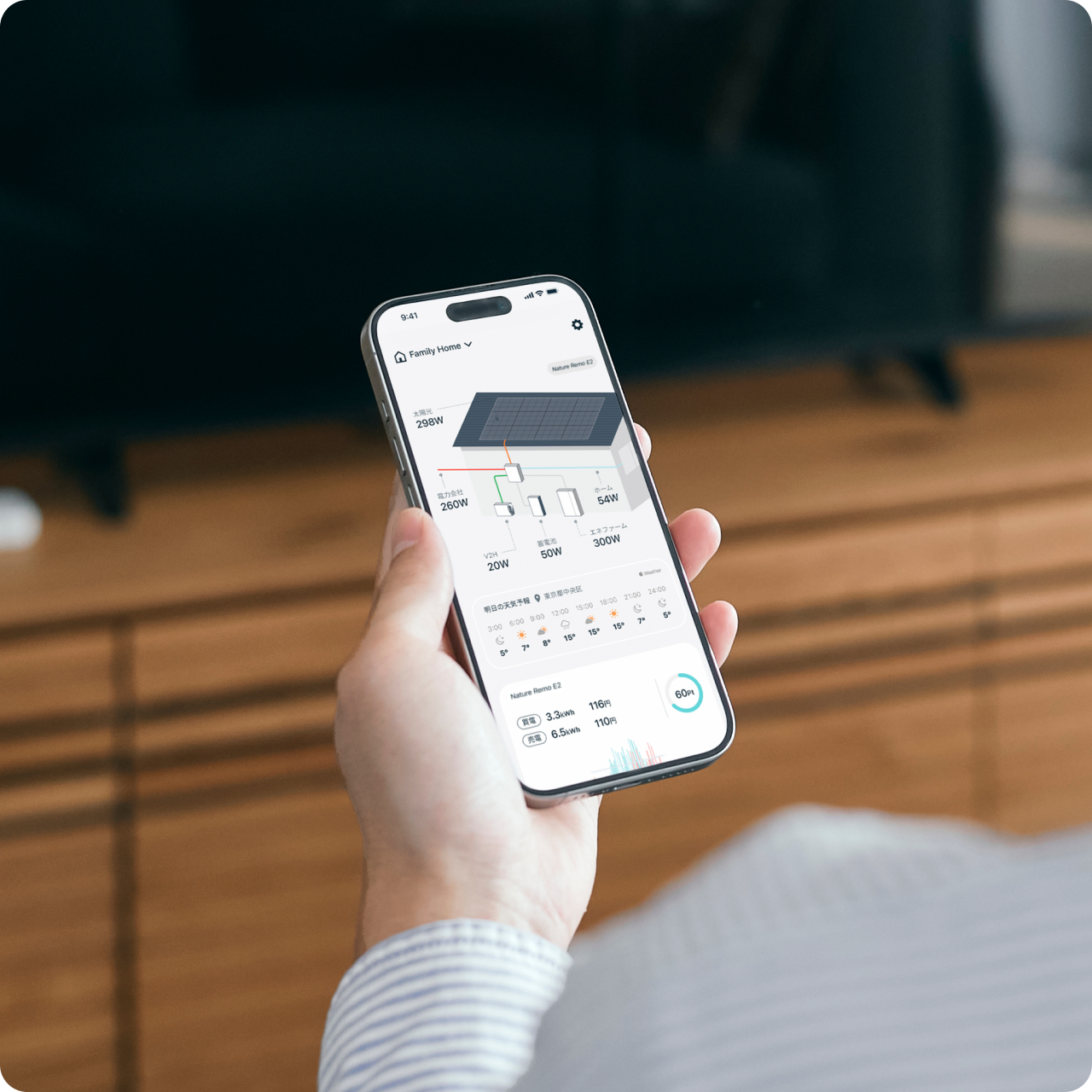 「電気代、高かったけど何が原因だったのかなぁ…」なんて思ったことはありませんか?エネルギー機器をまだ購入したことがない方も、Nature Remo E2 liteを使えば、電力消費量をスマホでリアルタイムに確認することができます。何に一番電気を使っているのか、グラフを見れば一目瞭然。