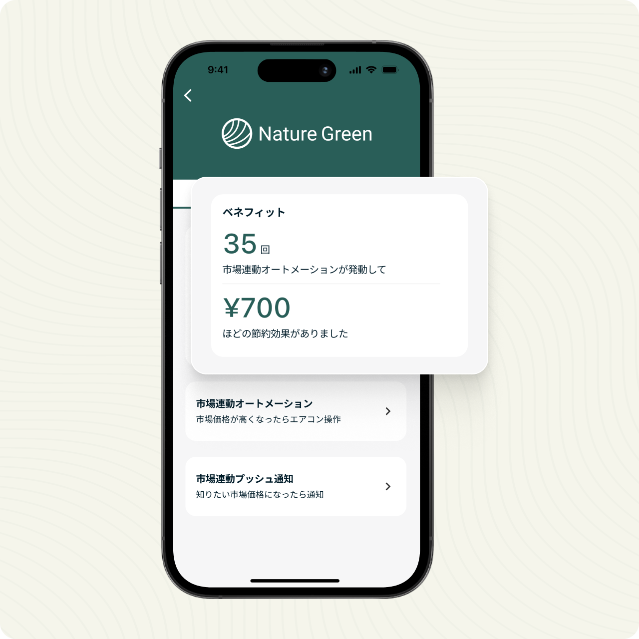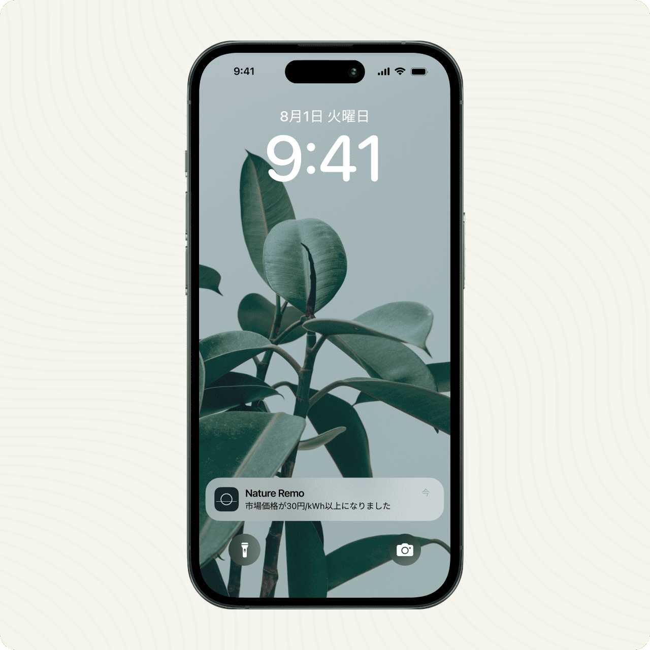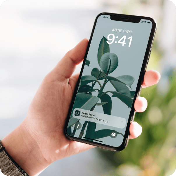 「Nature Remo」シリーズをお持ちでないお客様もNature Remoアプリから通知機能をご利用可能です。ただし市場価格の変動による自動でのエアコン制御機能は「Nature Remo」シリーズをご購入いただくことでご利用いただけるようになります。